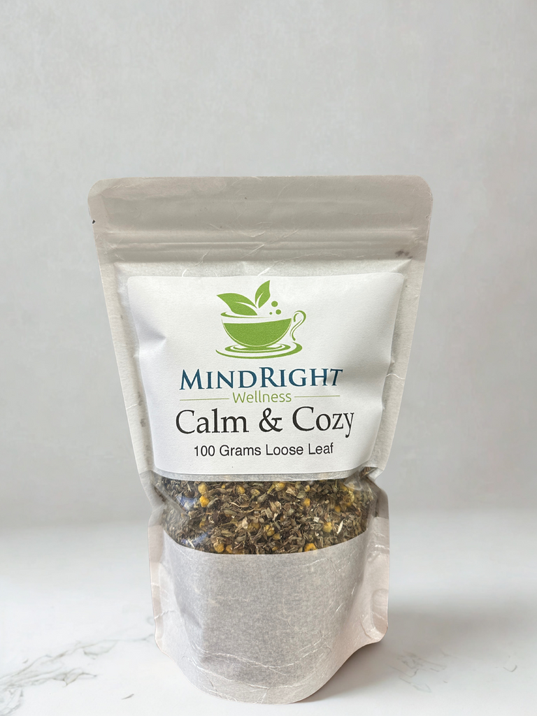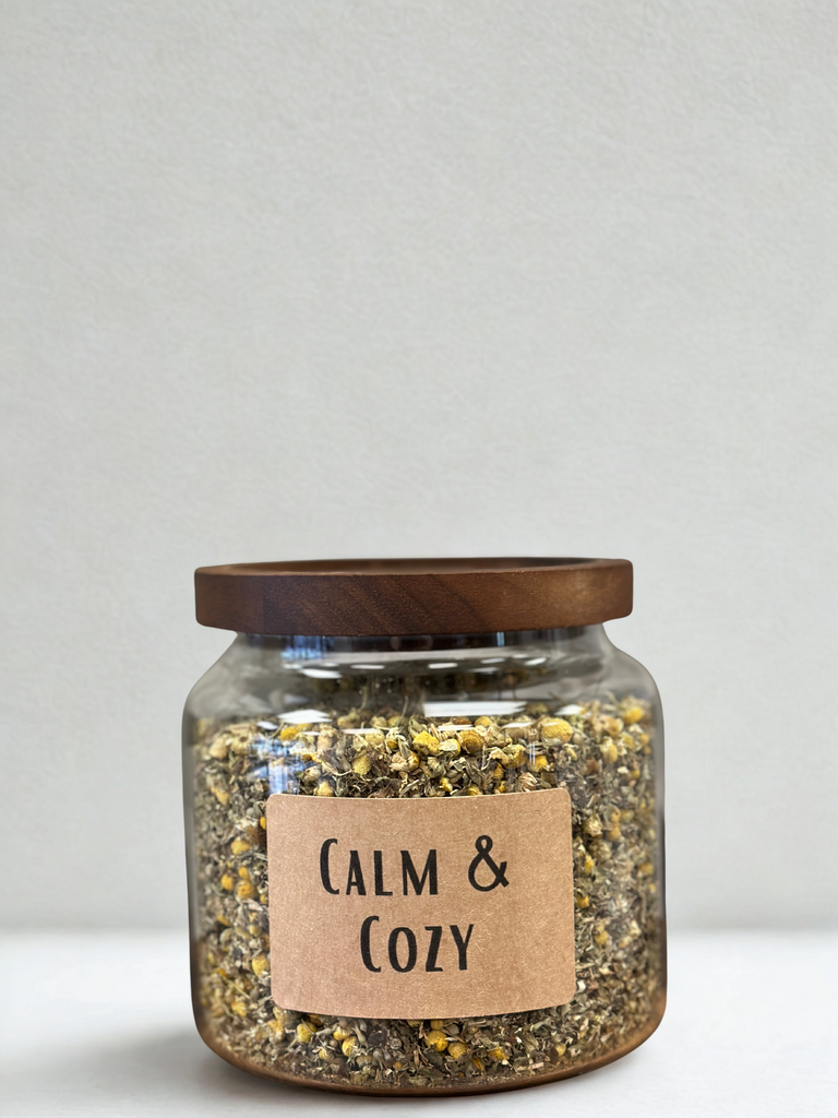 Unwind and settle into serenity with Calm & Cozy — a gentle, soothing herbal blend designed to ease tension, calm the mind, and prepare the body for deep relaxation. Whether it’s to quiet a busy mind at the end of a long day or melt away anxious energy, this tea is the perfect companion for peace and rest.