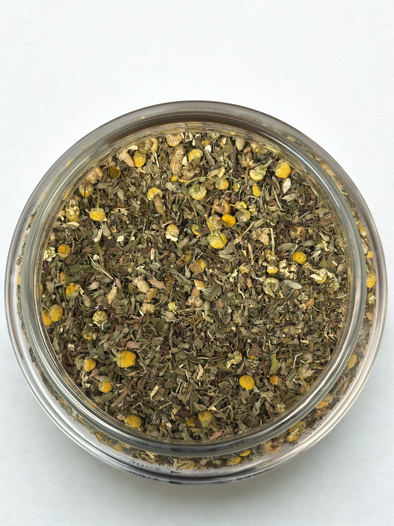Chamomile, Lemon Balm, Valerian Root, Catnip, Peppermint